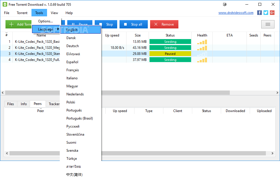 Tento program má téměř všechny možnosti pro správu souborů ke stažení přes torrent. . Pokud si nejste jisti, které torrentové weby použít, podívejte seznam.